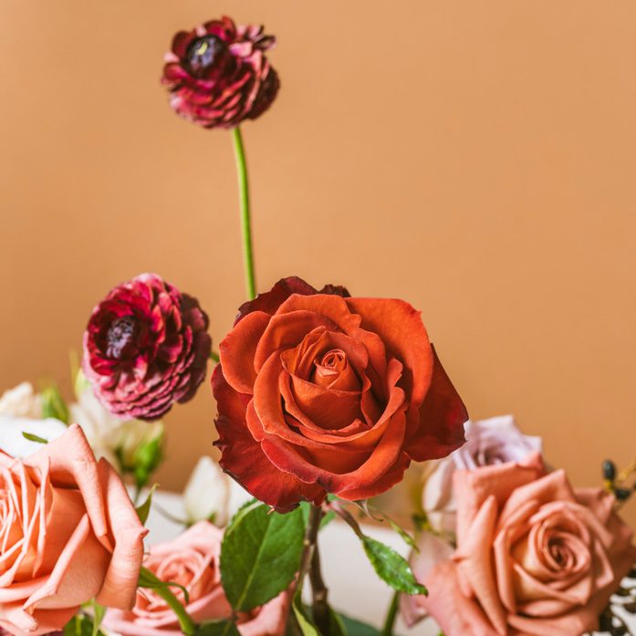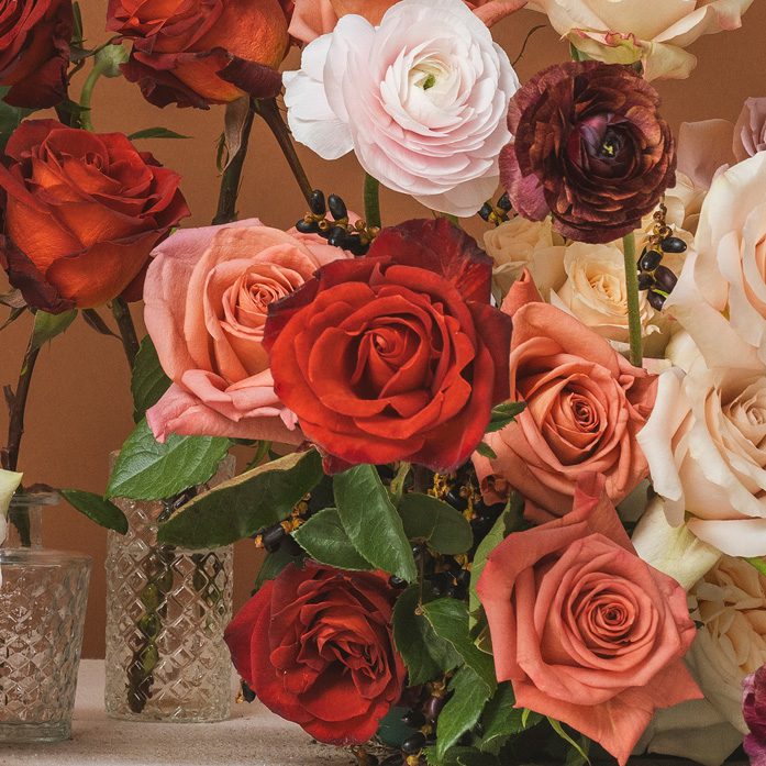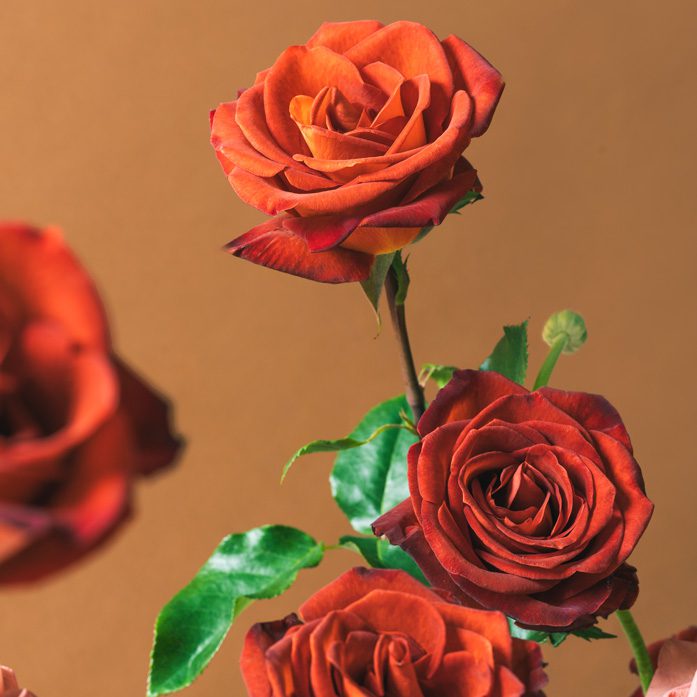 Café del Mar roses boast toasted deep wine red velvety petals with hints of burnt carmine and coffee orange. With a rustic charm reminiscent of red ochre and burnt brick. Their rusted flame undertones create a fiery display of natural elegance.